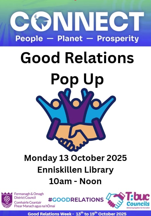 Good Relations staff will be at Enniskillen library to meet and greet the public promoting the work of FODC Good Relations and raising the profile of the DCGRP.